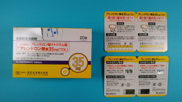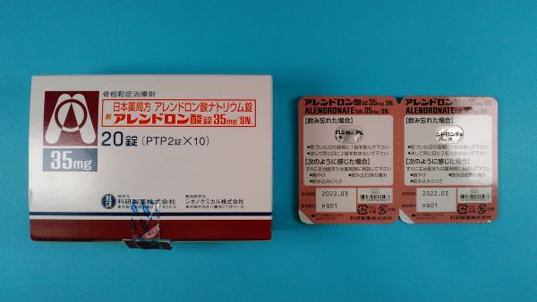 一般的な副作用には、便秘、腹痛、吐き気、胃酸の逆流などがあげられる。重度の副作用には、食道の障害、顎の骨壊死、大腿骨骨折などがあげられる。妊娠中または腎機能が低下している患者への使用は推奨されない。アレンドロン酸の作用機序は、骨を分解する細胞の活性を低下させることによって機能する。